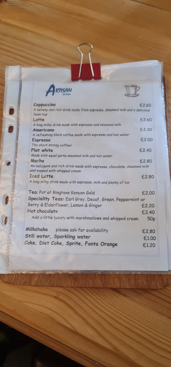 Artisan Tea Room Menu